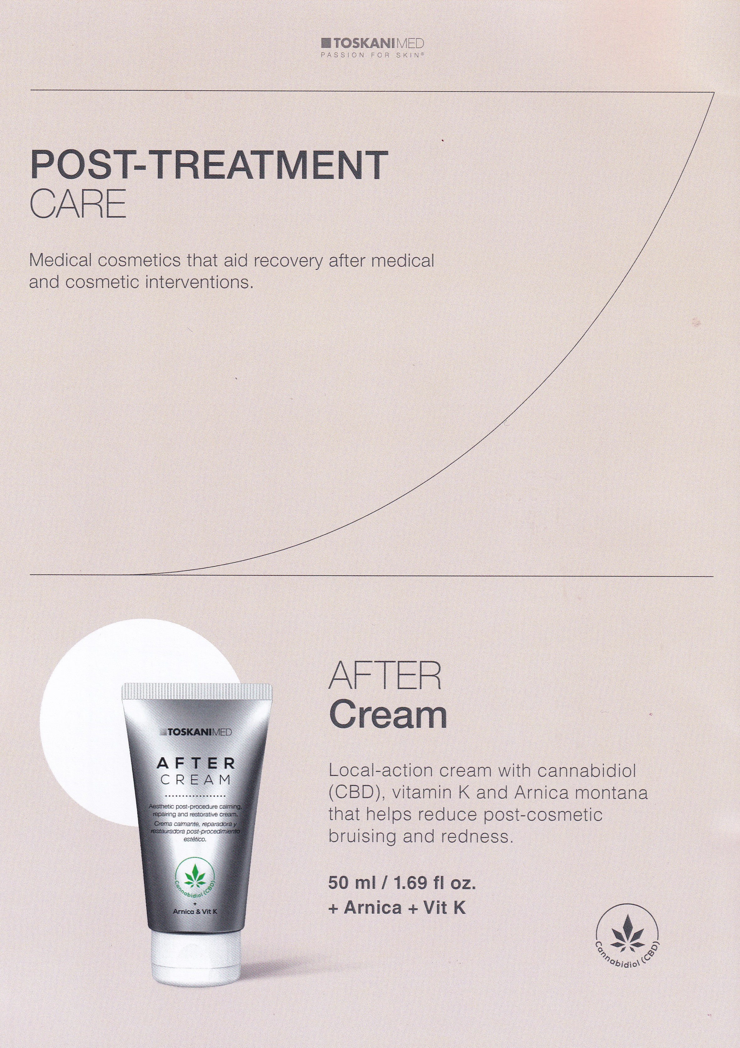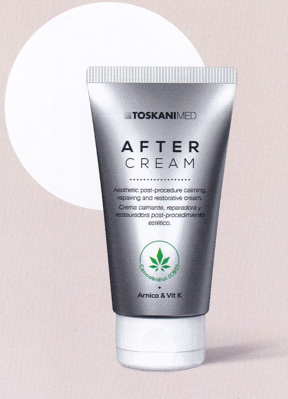 Lokal wirkende Creme mit Cannabidiol (CBD), Vitamin K und Arnica montana, die hilft, Blutergüsse und Rötungen nach kosmetischen Eingriffen zu reduzieren.
